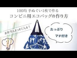100均の手ぬぐい1枚で作る コンビニのお弁当用エコバッグの作り方 youtube バッグの作り方 エコバッグ バッグ型紙