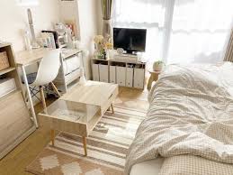 1k8畳で縦長の間取りのレイアウト実例 一人暮らし女子のおしゃれ部屋を紹介 folk 部屋 レイアウト 一人暮らし部屋レイアウト8畳 インテリア 1人部屋